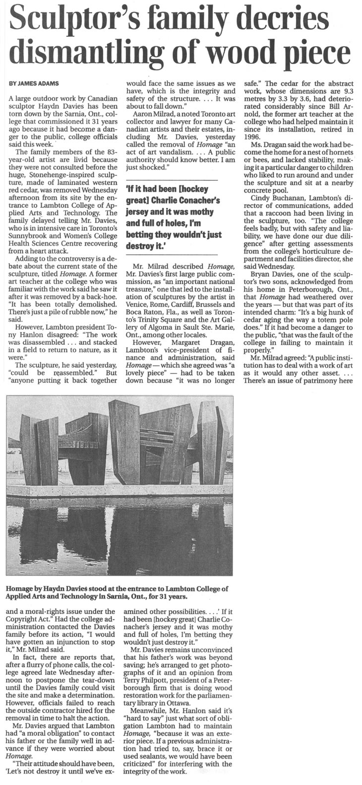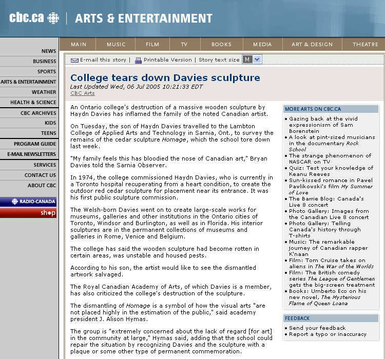 The story has been picked up Arts Journal Magazine, Sympatico/MSN News,