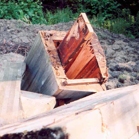 Photographs of the demolished sculpture clearly reveal an interior of healthy red cedar.